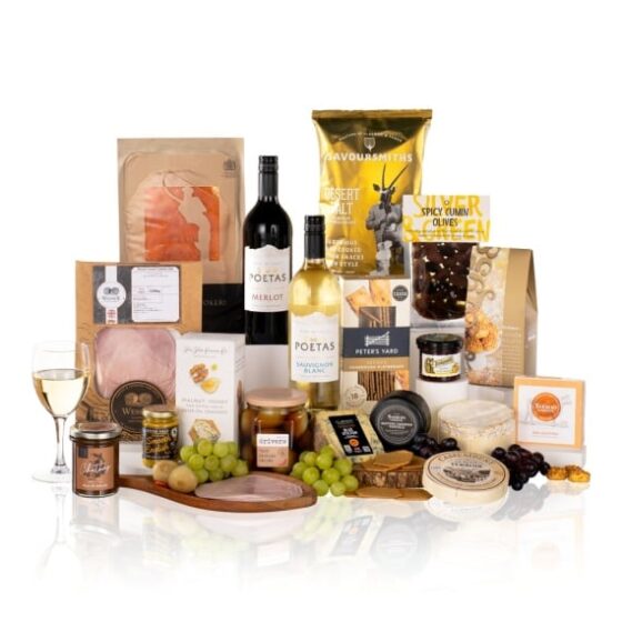 Refined, flavourful, and expertly curated-the Cool Christmas Hamper is a luxurious celebration of seasonal savoury indulgence. Enjoy a trio of standout cheeses-Barber’s Mature Cheddar, Red Leicester, and Long Clawson Blue Stilton-alongside soft and creamy Gillot Camembert. Pair them with Tracklements quince fruit cheese, Otter Vale mustard, Drivers pickled onions, and Highfield’s real ale chutney for a rich and varied cheeseboard. Complement your spread with Severn & Wye smoked salmon, Wessex Country gammon, and crunchy accompaniments like Peter’s Yard seeded flatbreads, Buiteman Gouda biscuits, and Savoursmiths crisps. This hamper contains 17 items: Buiteman Gouda Biscuits 75g Drivers 1906 Pickled Onions 550g Highfield Preserves Real Ale Chutney 215g Otter Vale Smooth English Mustard 90g Peter’s Yard Seeded Flatbreads 135g Savoursmiths Desert Salt Crisps 150g Silver & Green Spicy Cumin Olives 220g The Fine Cheese Co. Walnut, Honey and Extra Virgin Olive Oil Crackers 125g Tracklements Quince Fruit Cheese 120g Barber’s Farmhouse Mature Cheddar Truckle 200g Barber’s Farmhouse Red Leicester Cheese 200g Gillot Camembert Le Petit Terroir 250g Long Clawson Blue Stilton 220g Severn & Wye Smoked Salmon 125g Wessex Country Gammon Dorset Cured Sliced Ham 200g Sauvignon Blanc Pais de Poetas Chile 75cl 11% vol Merlot Pais de Poetas Chile 75cl 12.5% vol Packed in decorative postal outer.