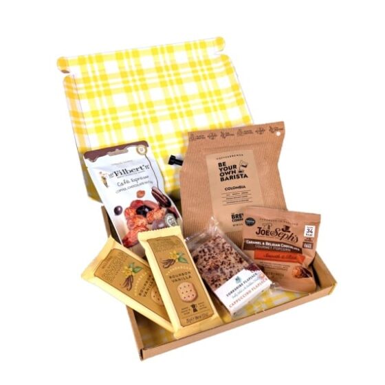For those who live for their next cup, the Penny Post Coffee Lover brings together rich coffee flavours with indulgent treats. From Colombian coffee to chocolate popcorn and a hot chocolate spoon, it’s a delicious celebration for caffeine enthusiasts. This hamper contains 6 items: Cappuccino Flapjack 95g Colombia Coffeebrewer (100% Arabica Ground Coffee) Espresso Nut Mix 75g Madagascar Bourbon Vanilla Twin Pack Biscuits 25g Popcorn with Caramel & Belgian Chocolate 7g Limited Edition Hot Choc Spoon 40g Packed in a branded letterbox friendly gift box.
